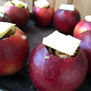Vul de appeltjes en druk de vulling aan. Giet vervolgens de drank erin en dek dit af met een plakje roomboter.